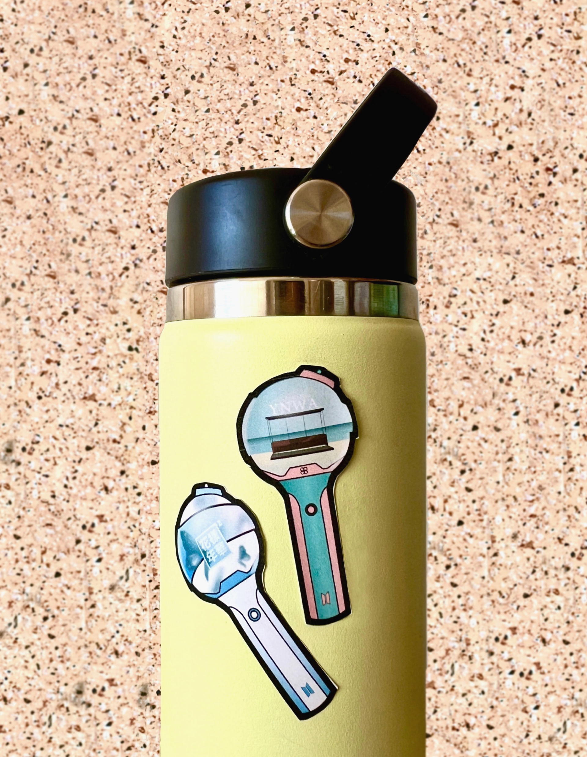 • Transparency: Emulate the style used in the album cover to create fan-style stickers to promote each musical era. With the addition of an Army Bomb V.2 (fan light stick depicted on the right) for self-study on sticker promotion. Draw inspiration towards what fans would love and promote via sticker marketing.
