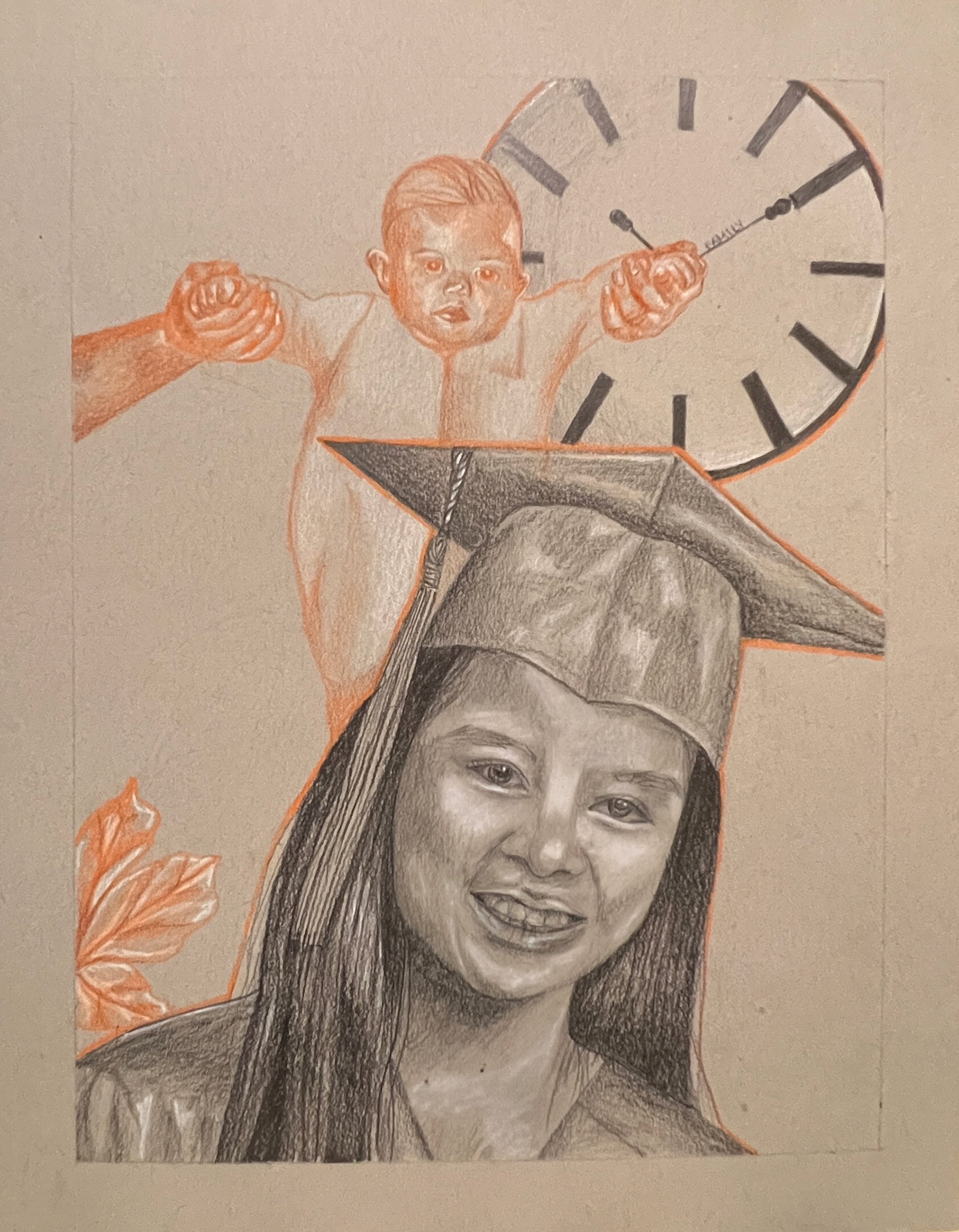 Create a life drawing that depicts who narrates who you are and the choice of materials is open.